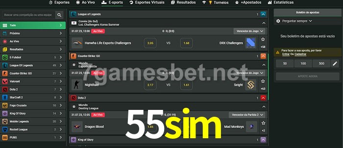 O 55sim oferece uma grande seleção de opções de apostas em e-sports com probabilidades competitivas